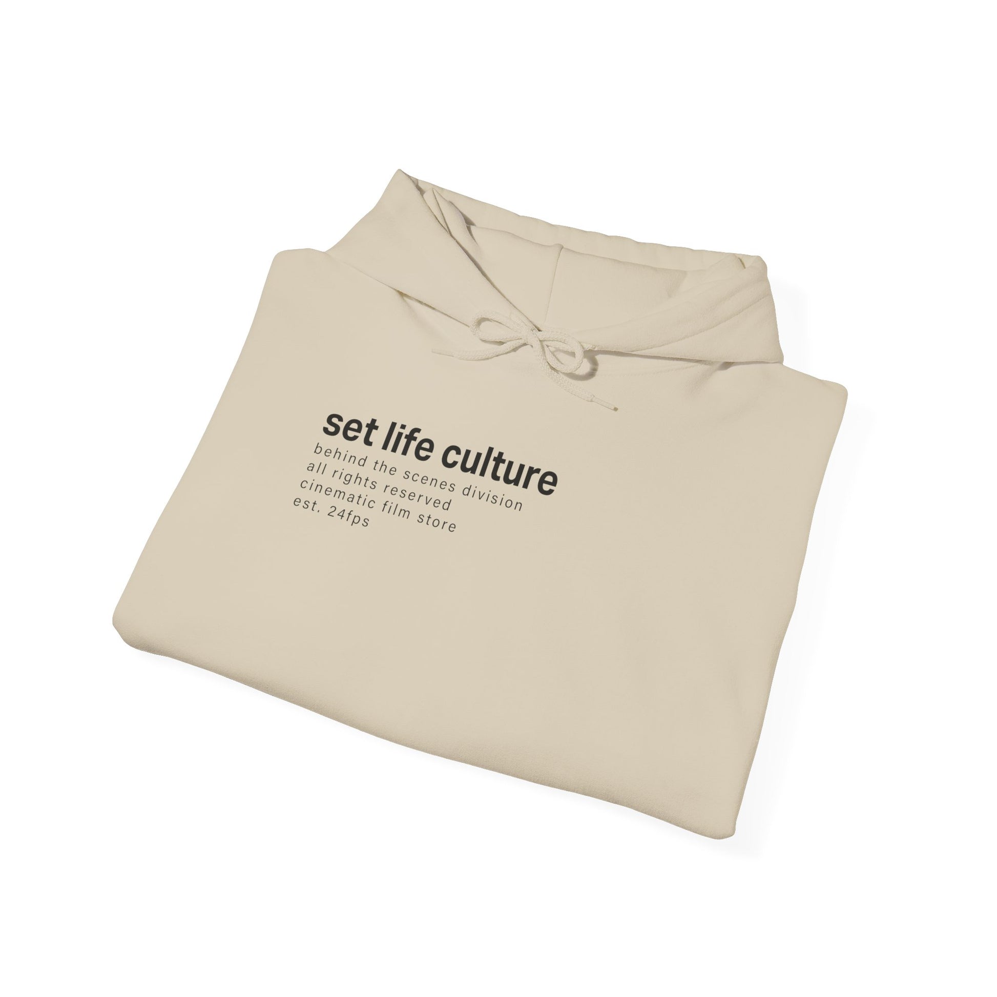 This hoodie is made for the crew members who power the production world. From early call times to late night wraps, Set Life Culture honors the grind, the craft and the community that makes cinema possible. Minimal, unisex and durable, it is designed for comfort in every stage of production and style for life off set.